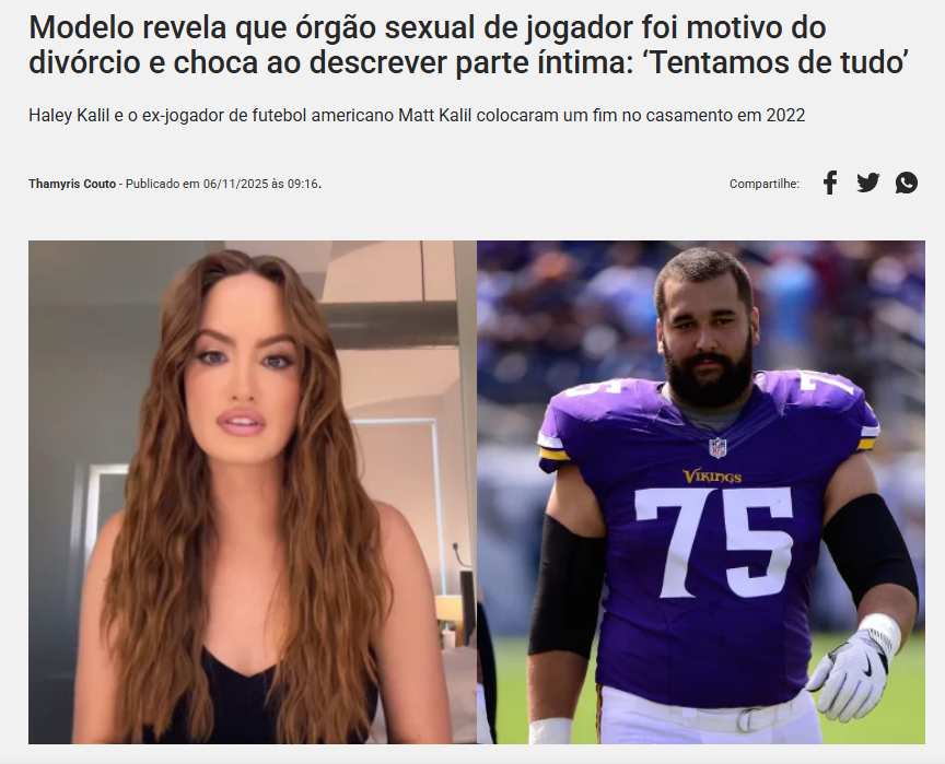 O atleta nunca sofreu de disfunção erétil, mas segundo a modelo, seu pênis era muito pequeno comparado a outros homens que ela já havia se relacionado!